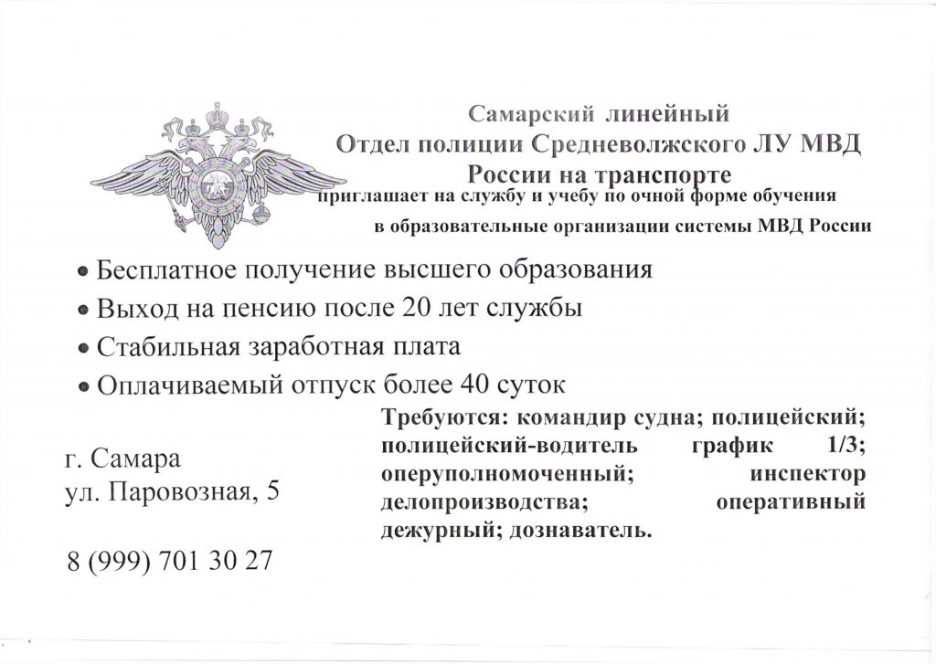 Самарский линейный отдел полиции Средневолжского ЛУ МВД России на транспорте приглашает на службу и учебуБлагоустройствоЖКХЭкология 8 октября 2025